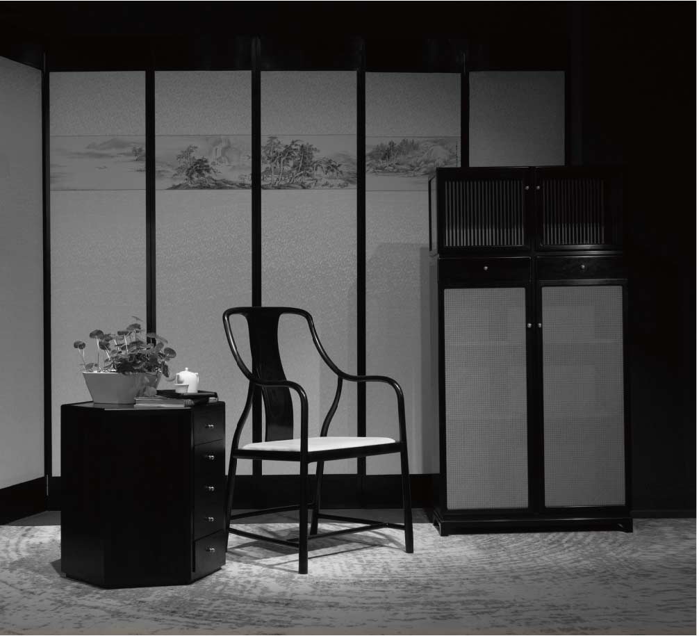 線條描述的層次遞進(jìn),直線的垂感加以粗化,有厚實(shí),穩(wěn)重質(zhì)感,轉(zhuǎn)折之處的圓線描述呈現(xiàn)圓融之感。“層階”代表的是繪畫線條的表現(xiàn)手法。